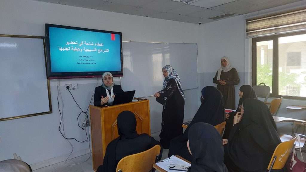 نظم قسم علوم الحياة في كلية التربية للعلوم الصرفة دورة تدريبية عن الأخطاء الشائعة في تحضير الشرائح النسيجية وكيفية تجنبها .